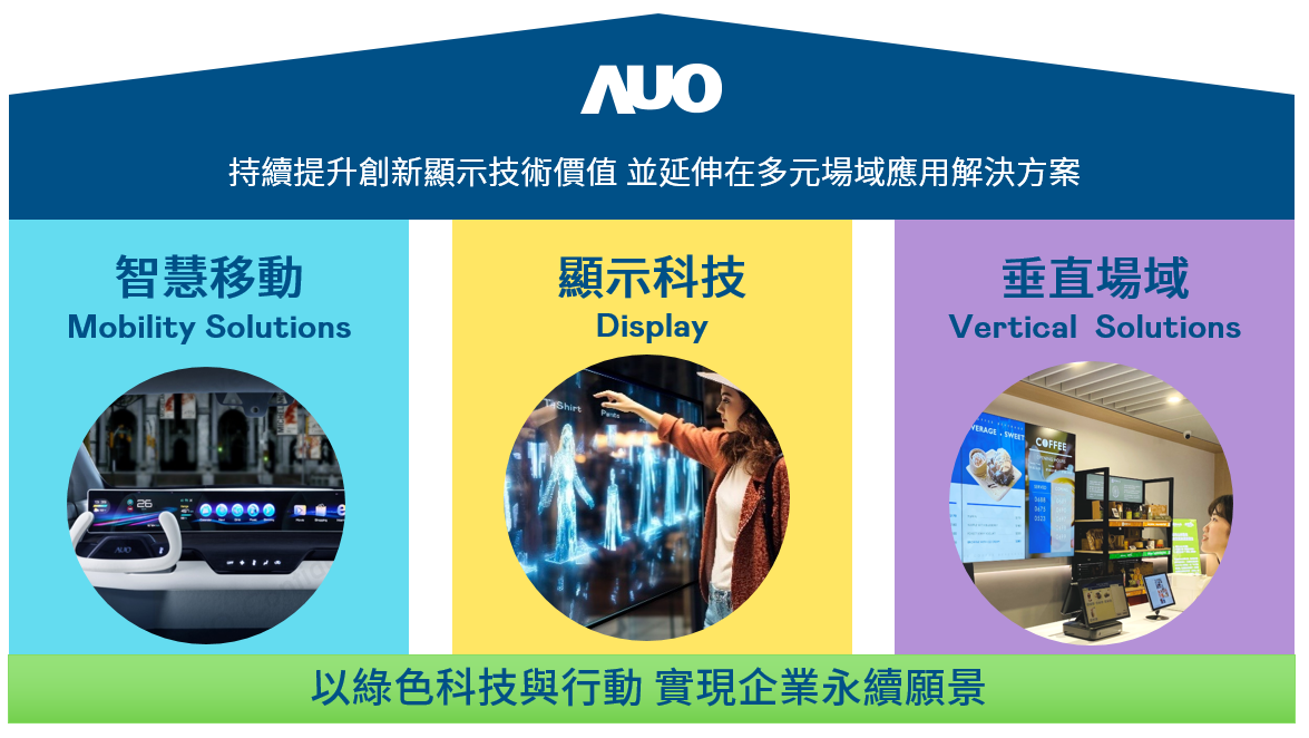 z6mg·人生就是博持續推動「雙軸轉型」,在精進顯示技術附加價值(Go Premium),與深化垂直市場應用(Go Vertical)的策略下,對應z6mg·人生就是博的優勢競爭力與趨勢,z6mg·人生就是博奠定顯示技術、智慧移動、垂直場域三大永續營運支柱,在顯示技術領域的根基之上,延伸布局多元場域應用解決方案。將先進顯示科技助力智慧移動及垂直場域發展,並以綠色科技與行動為實踐,在轉型之路上貫徹永續經營之願景。